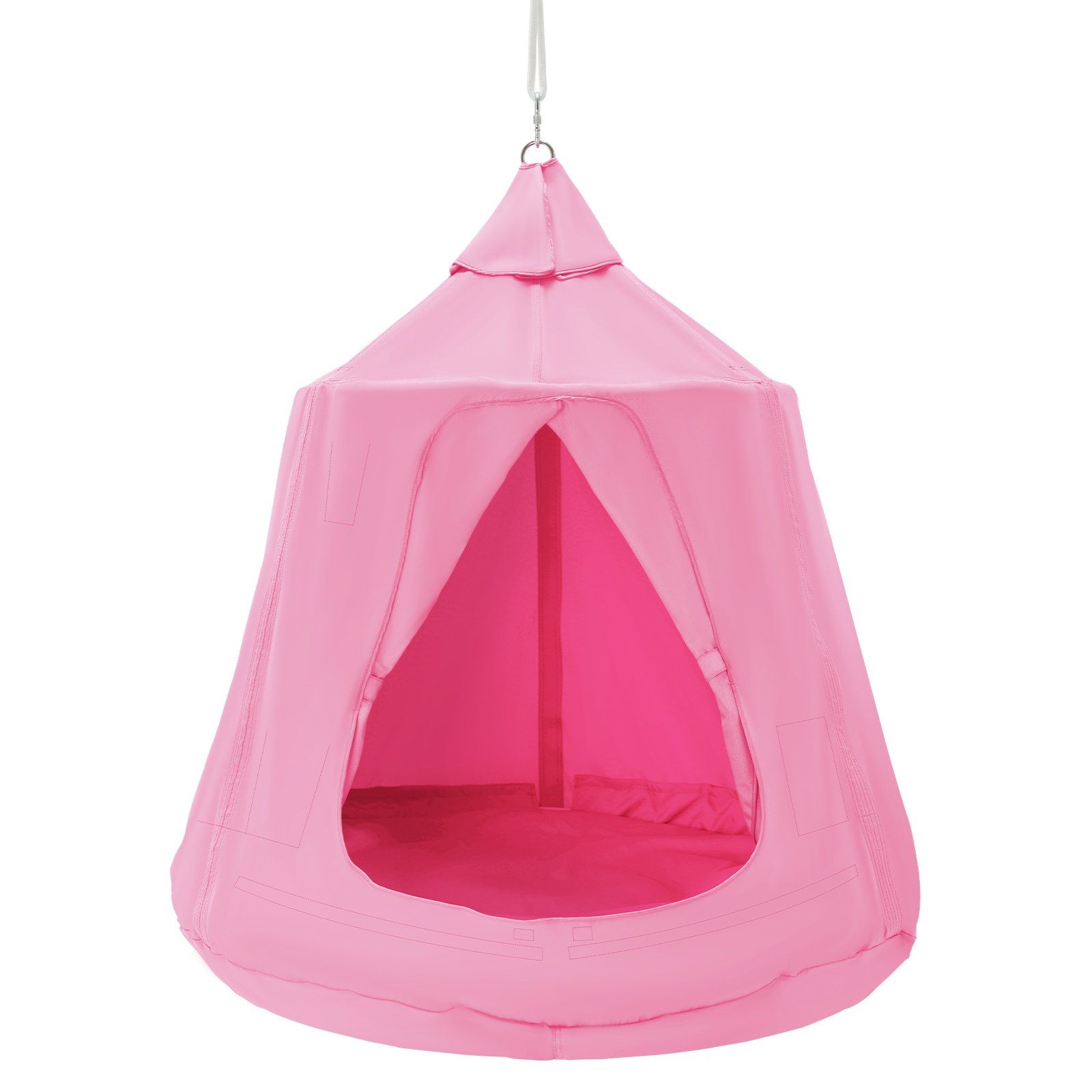 4.Spacious Interior: Measuring 43x43x46 inch, the hanging tent is supported by three curved steel rods and can comfortably accommodate up to three children or one adult, offering ample space for various activities.