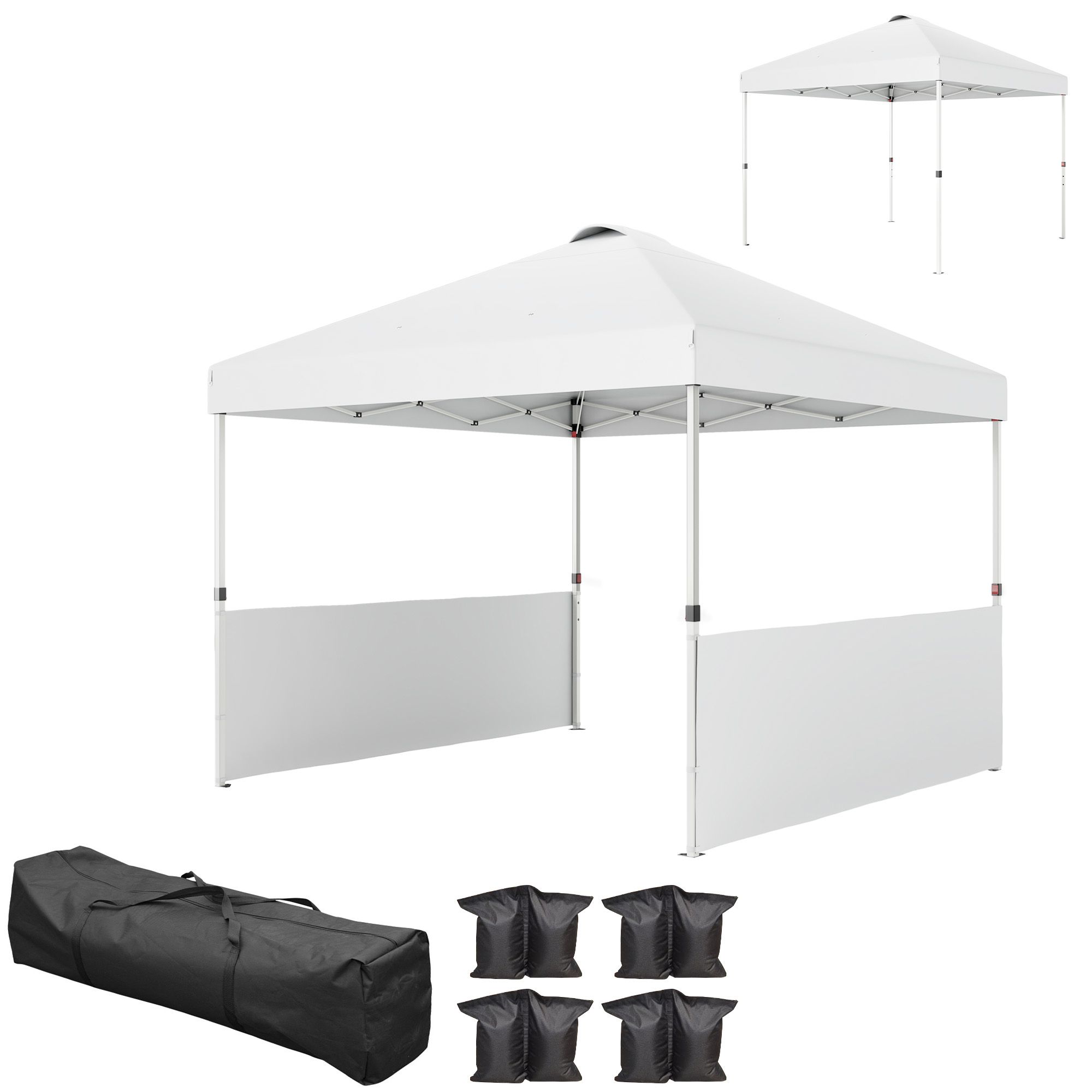 Outsunny 10' x 10' Pop Up Canopy Tent with 2 Half Sidewalls, UV50+ Instant Sun Shelter with Wheeled Carry Bag, White Outsunny 10' x 10' Pop Up Canopy Tent with 2 Half Sidewalls, UV50+ Instant Sun Shelter with Wheeled Carry Bag, White Outsunny 10' x 10' Pop Up Canopy Tent with 2 Half Sidewalls, UV50+ Instant Sun Shelter with Wheeled Carry Bag, White