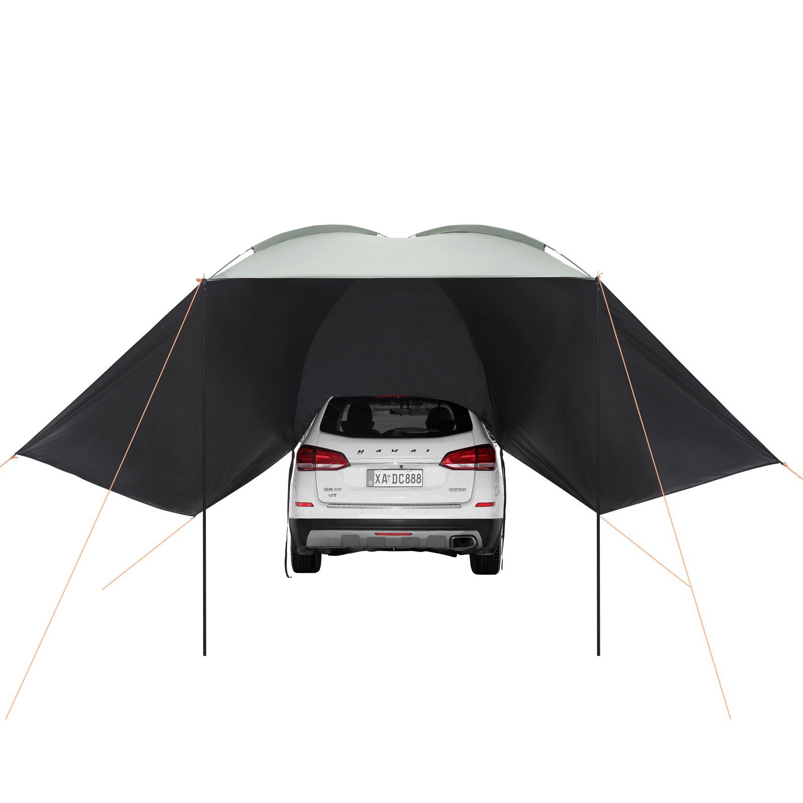 2.Heavy-Duty & Durable Material: Crafted from premium 190T polyester fabric with a PU 2000mm coating, this vehicle awning is built to last. The Q235 support poles are rust-proof, and the fiberglass rods are corrosion-proof and aging-resistant. Thickeded wind-resistant ropes are ready to withstand all weather conditions.