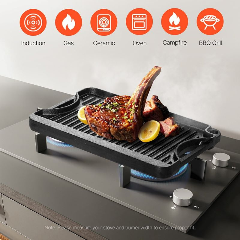 This stove grill griddle is ideal for cooking everything from breakfast to dinner.