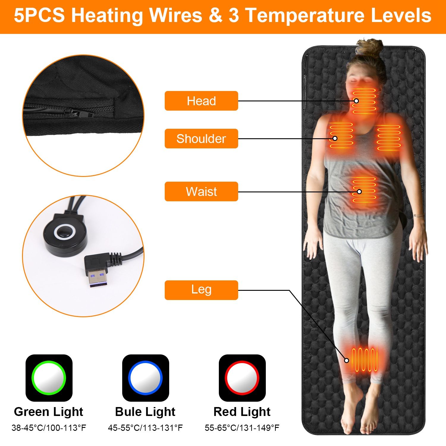 1.Featured with 5pcs heating wires with large heating areas, our 76.77x24.01in large size heating pad fits for most figures of man and woman